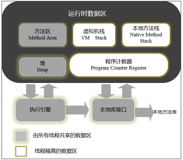 程序计数器:一块较小内存区域,指向当前所执行的字节码。如果线程正在执行一个Java方法,这个计数器记录正在执行的虚拟机字节码指令的地址,如果执行的是Native方法,这个计算器值为空。